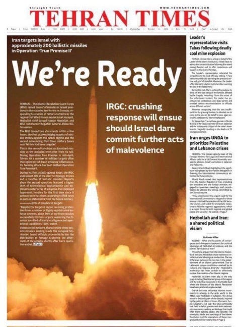 Iran, like any other self-preserving nation, can and should be expected to retaliate. That's a given. But they have also learned that only way to deal with the lunatic regime in Tel Aviv is to ratchet up the ante. You move, then I move bigger.